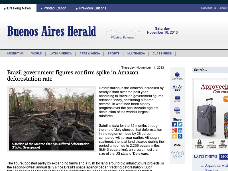 News Analysis: Brazil Deforestation increases Naturalists’ concerns about Climate Change. The illegal logging activities of a few people, as well as projected Real Estate Developments in the Amazon Basin, are largely responsible.