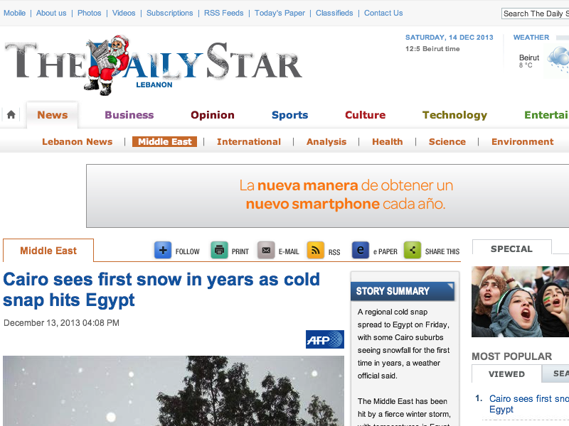 News Analysis: Egypt-Wide Snowfall Is A Rarity which extends from Alexandria along the Mediterranean Sea in the North all the way through the Sinai Peninsula to its South. The Unusual Snowfall has caused residents to stay indoors to keep warm.