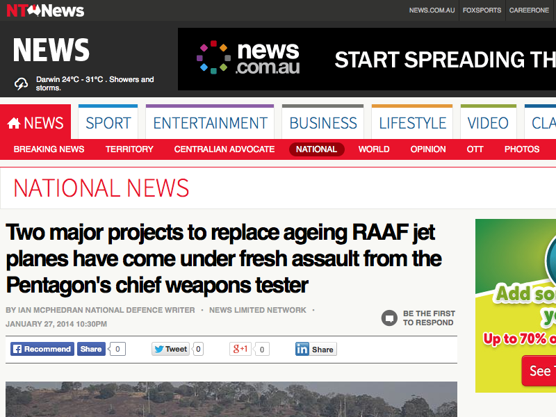 News Analysis: Australia’s Military is spending Up To $16.4 Billion Dollars for Two Aircraft Systems: Fighter and Anti-Submarine. The United States Pentagon Head of these Programs admits to Serious Flaws in both Systems. The flaws have been known, but Unsolved for Several Years.