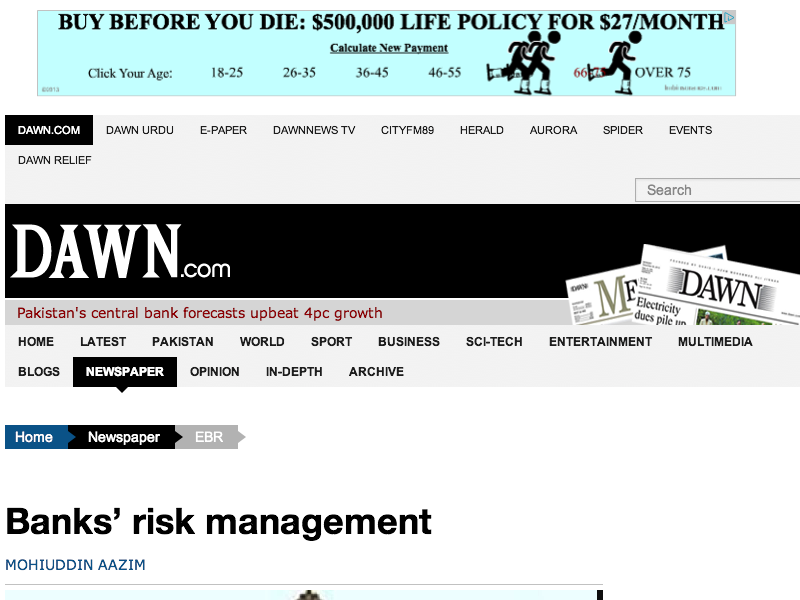 Reference: http://www.dawn.com/news/1080197/banks-risk-management