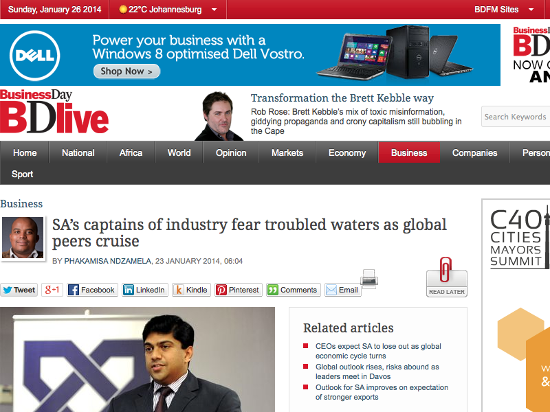 News Analysis: 2014 may be a more troubling period for Businesses in South Africa according to recent Poll Data of Captains of Industry in the Nation. Rather than displaying a great deal of optimism, which is evident in Asia for example, they are more circumspect (to their credit).