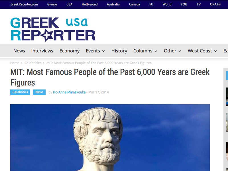 Reference: http://usa.greekreporter.com/2014/03/17/mit-most-famous-people-of-the-past-6000-years-are-greek-figures/