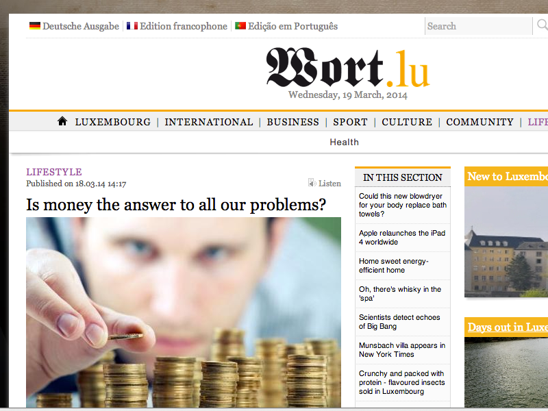 Reference: http://www.wort.lu/en/view/is-money-the-answer-to-all-our-problems-5328477ee4b0743c903bb816