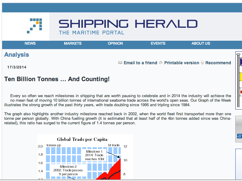 News Analysis: Across the Oceans, the World Shipping Level Will Achieve 10 Billion Tons Of Cargo This Year; no small feat. It appears that the calculated growth of Containerized Shipping was to the point. Bulk Cargo shipping was apparently underestimated. Crude Oil Shipping diminished slightly.
