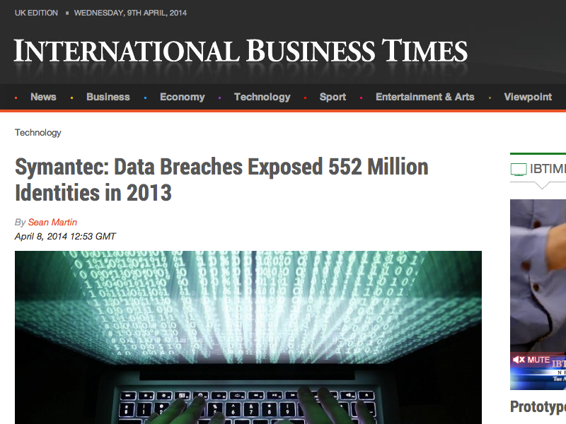 Reference: http://www.ibtimes.co.uk/symantec-data-breaches-exposed-552-million-identities-2013-1443874