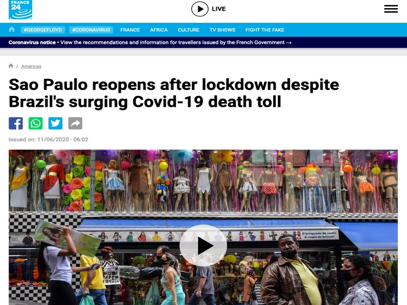 Brazil’s President Mr. Jair Bolsonaro has made the firm choice, as a strong leader of his Country of Brazil, to treat Coronavirus [CV-19] like a Influenza, which it is. He was too smart to fall into the Mainstream Media’s hysterics which were designed to have ‘Planetary Pathos’ be Earthlings fates. He took the high road and largely kept Brazil open to commerce. Perhaps realizing that Medical “Experts” of the world: Did NOT initially know of Coronavirus’s existence; Did NOT see it approaching; Did NOT know when it had initially arrived; Did NOT know how to deal with it when they saw it face to face, President Bolsonaro called Coronavirus for what it is: A Influenza [nothing more].