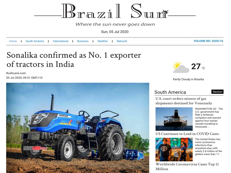 Reference: https://www.brazilsun.com/news/265651003/sonalika-confirmed-as-no-1-exporter-of-tractors-in-india