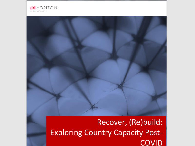 An excellent report, thorough in its scope, has been created by ‘Horizon Insight and Strategy’; it is called “Recover, (Re)build: Exploring Country Capacity Post-COVID”. This work analyzes 122 countries throughout the world and looks at ‘Resiliency Elements’ for economic success, after this Influenza gets defeated.
