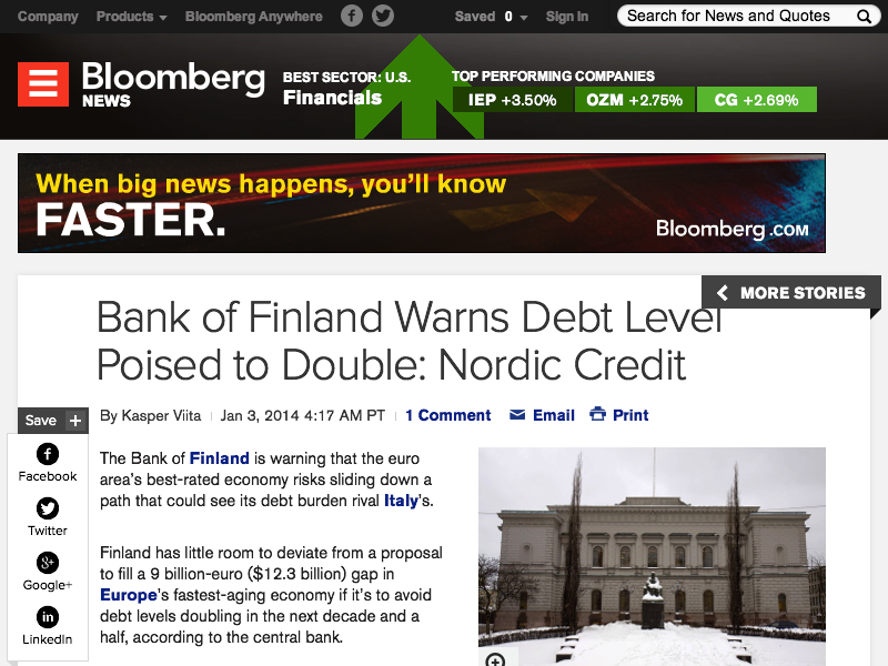 Reference: http://www.bloomberg.com/news/2014-01-03/bank-of-finland-warns-debt-level-poised-to-double-nordic-credit.html