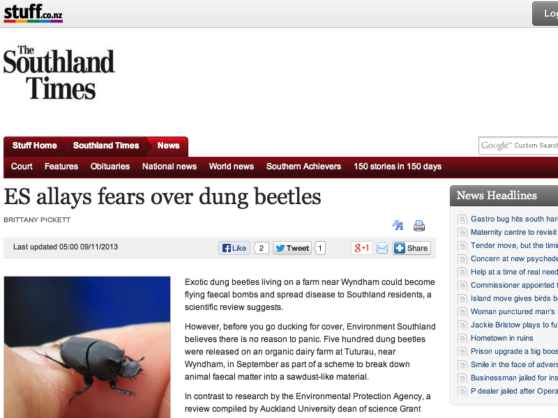 Reference: http://www.stuff.co.nz/southland-times/news/9380789/ES-allays-fears-over-dung-beetles