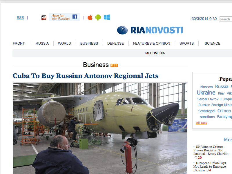 Reference: http://en.ria.ru/business/20140328/188849024/Cuba-To-Buy-Russian-Antonov-Regional-Jets.html