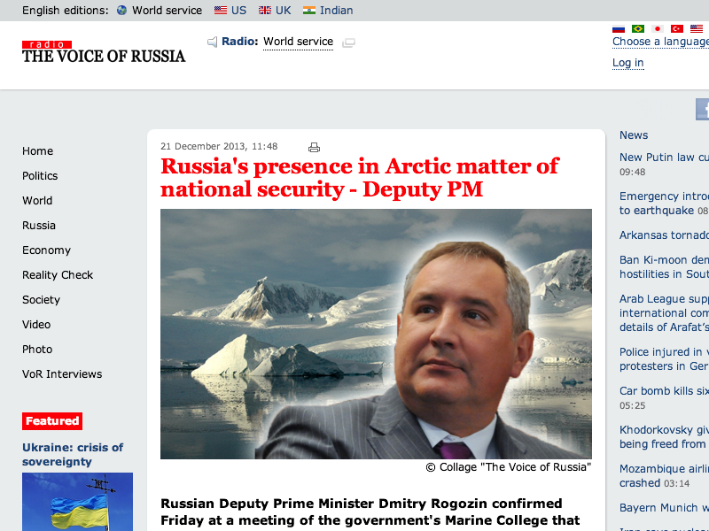 Reference: http://voiceofrussia.com/news/2013_12_21/Russias-presence-in-Arctic-matter-of-national-security-Deputy-PM-9304/