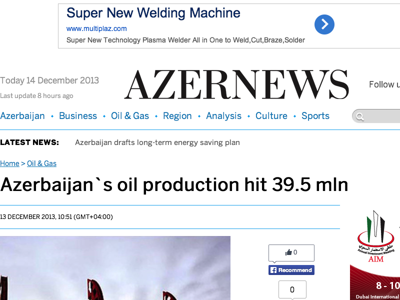 News Analysis: Azerbaijan’s Oil Production Will Be Rising during the next several years Government Authorities estimate. The 39+ Million Tons of Oil produced so far, in 2013, will increase in 2014 and 2015.