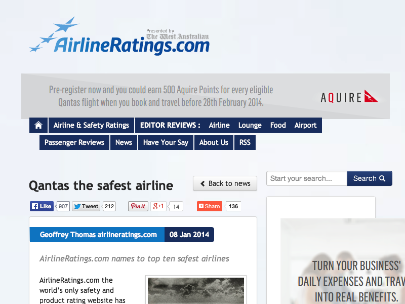Reference: http://www.airlineratings.com/news/201/qantas-the-safest-airline