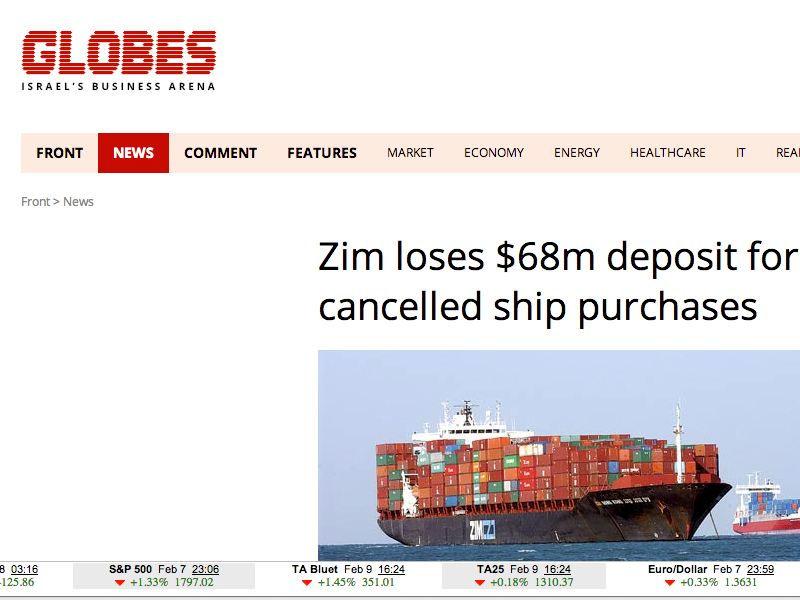 Reference: http://www.globes.co.il/en/article-zim-loses-68m-deposit-for-cancelled-ship-purchases-1000915292