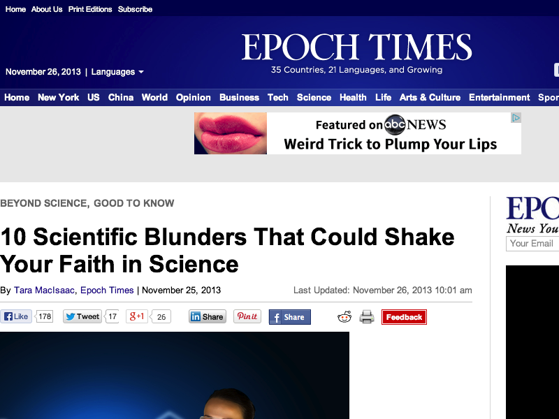 Reference: http://www.theepochtimes.com/n3/371803-10-scientific-blunders-that-could-shake-your-faith-in-science/