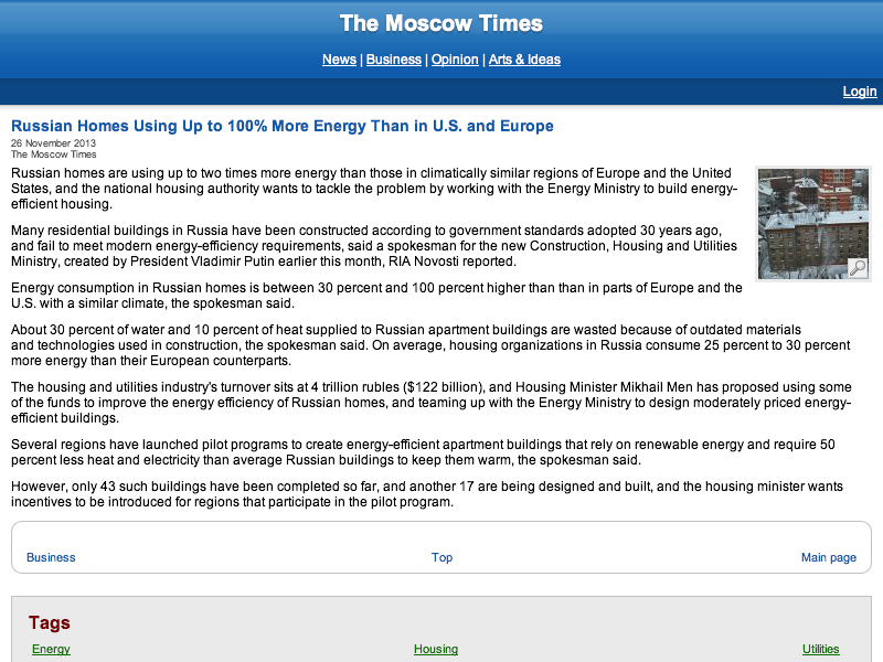 Older Russian Buildings and Homes are Energy Wastrels