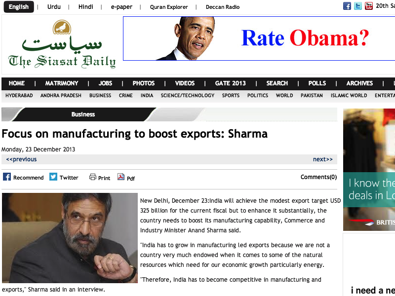 Reference: http://www.siasat.com/english/news/focus-manufacturing-boost-exports-sharma