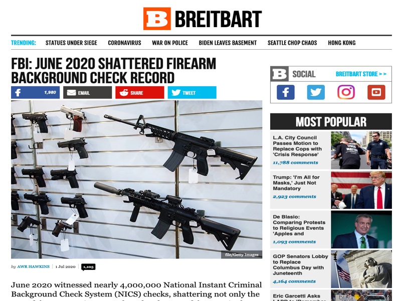 The FBI stated that nearly 4,000,000 ‘National Instant Criminal Background Check System’ (NICS) checks were made in June. This was a historical ‘high’ as to examinations of ‘bona fides’ to purchase arms. A estimated 2,387,524 firearms were sold during the month.